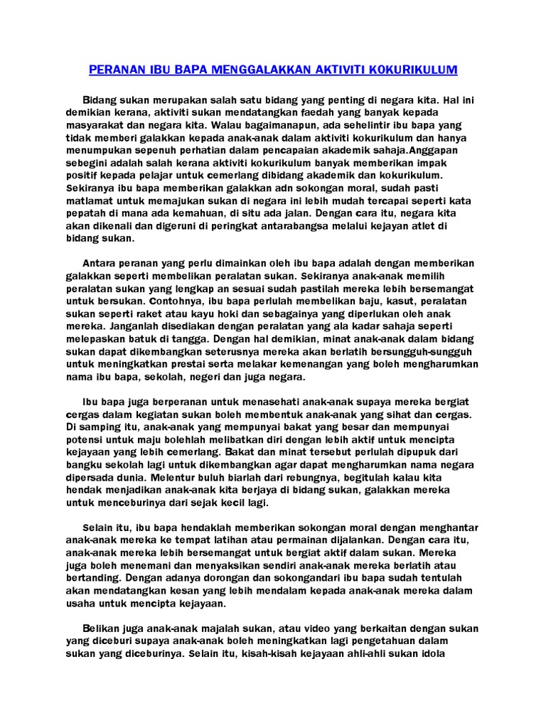 Karangan Peranan Ibu Bapa Menggalakkan Aktiviti Kokurikulum Pdf